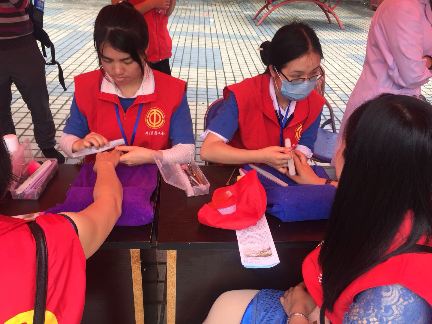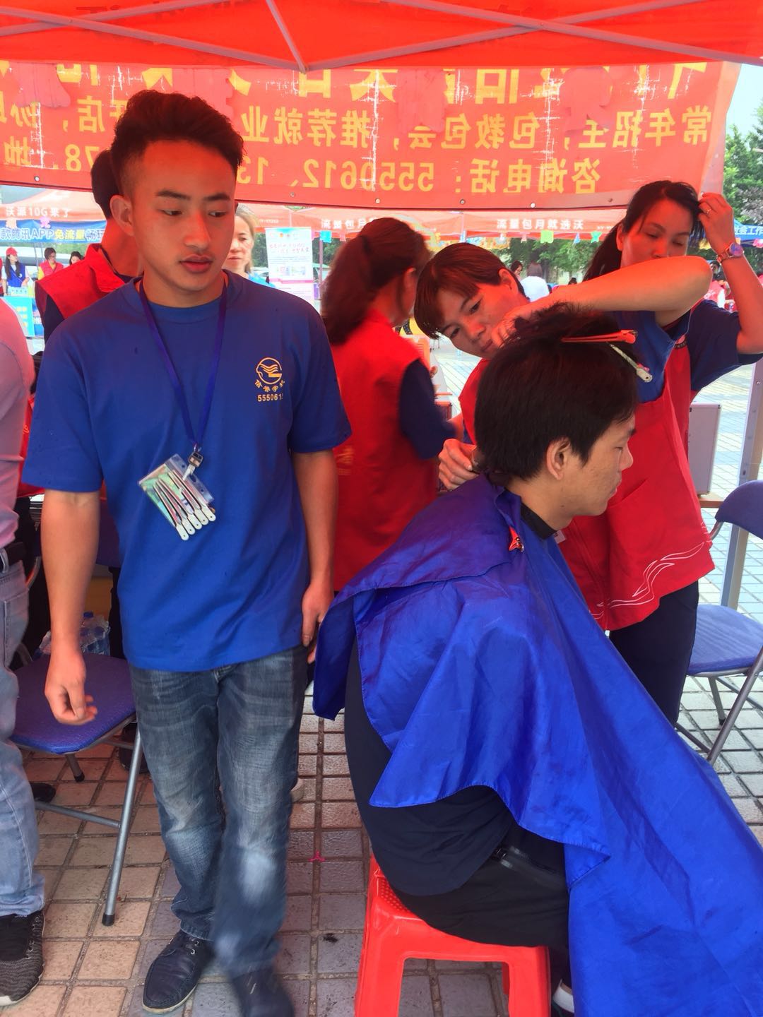 信誉学校师生于2018年3月4号在新青广场,参加政府举办的志愿者服务,为广大的市民免费剪发、美甲、盘发现在。